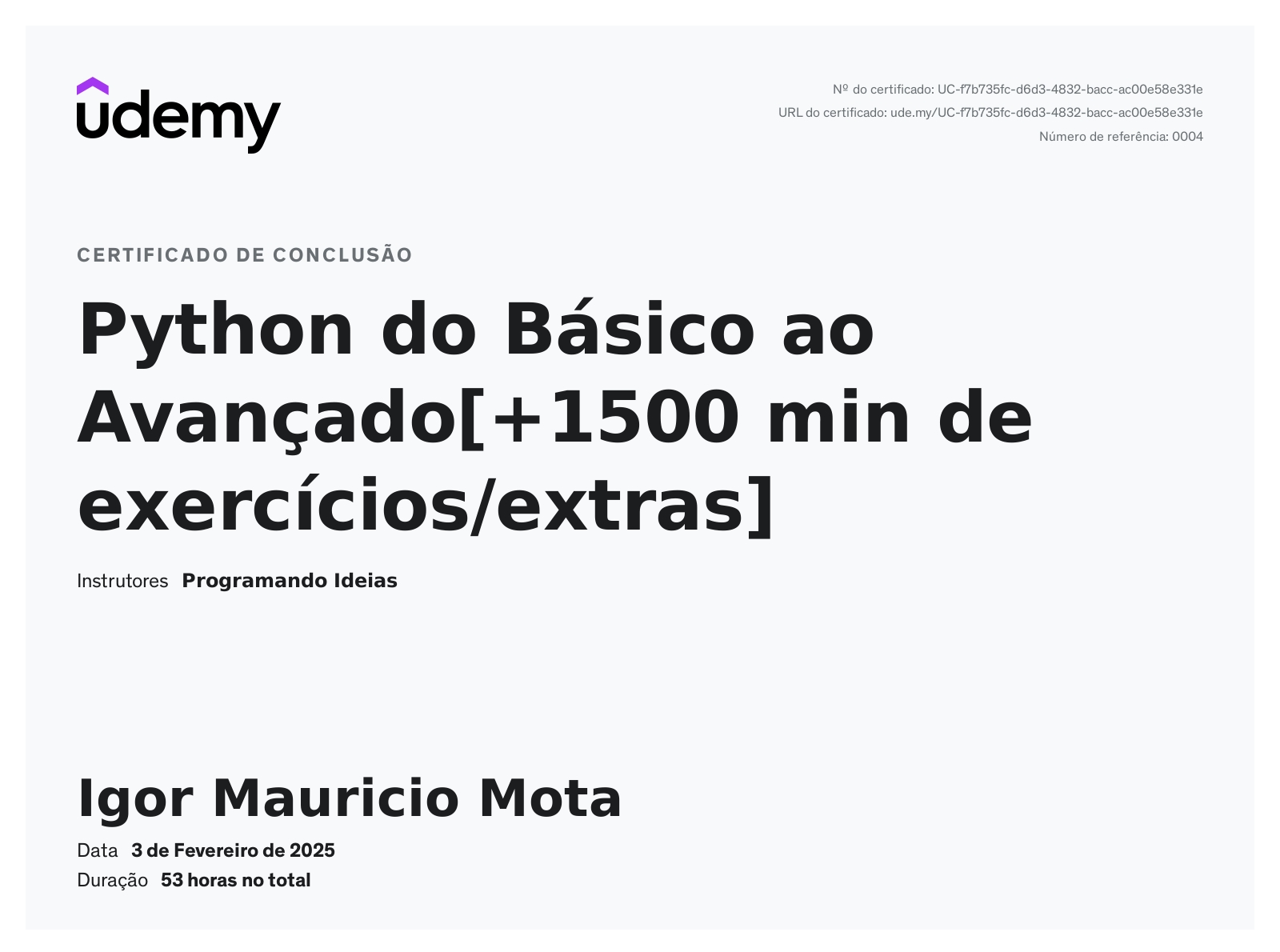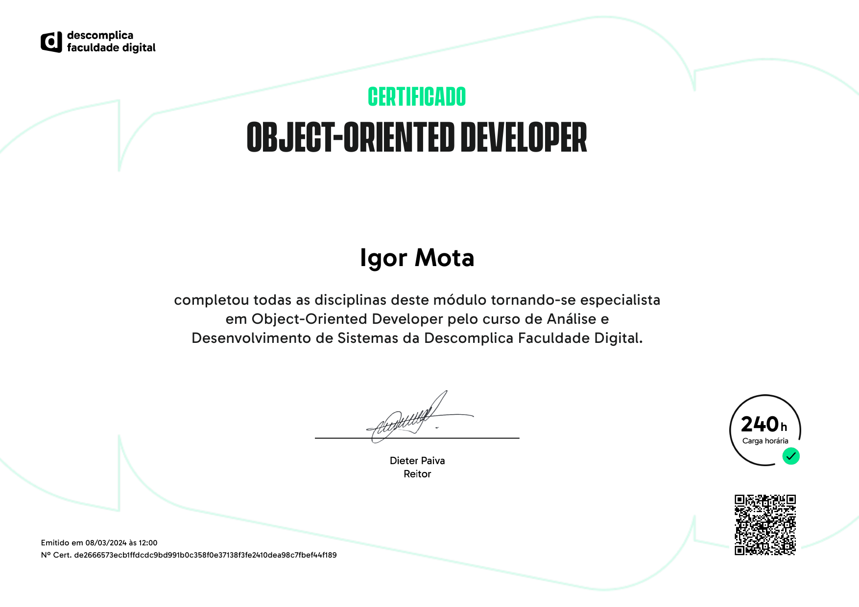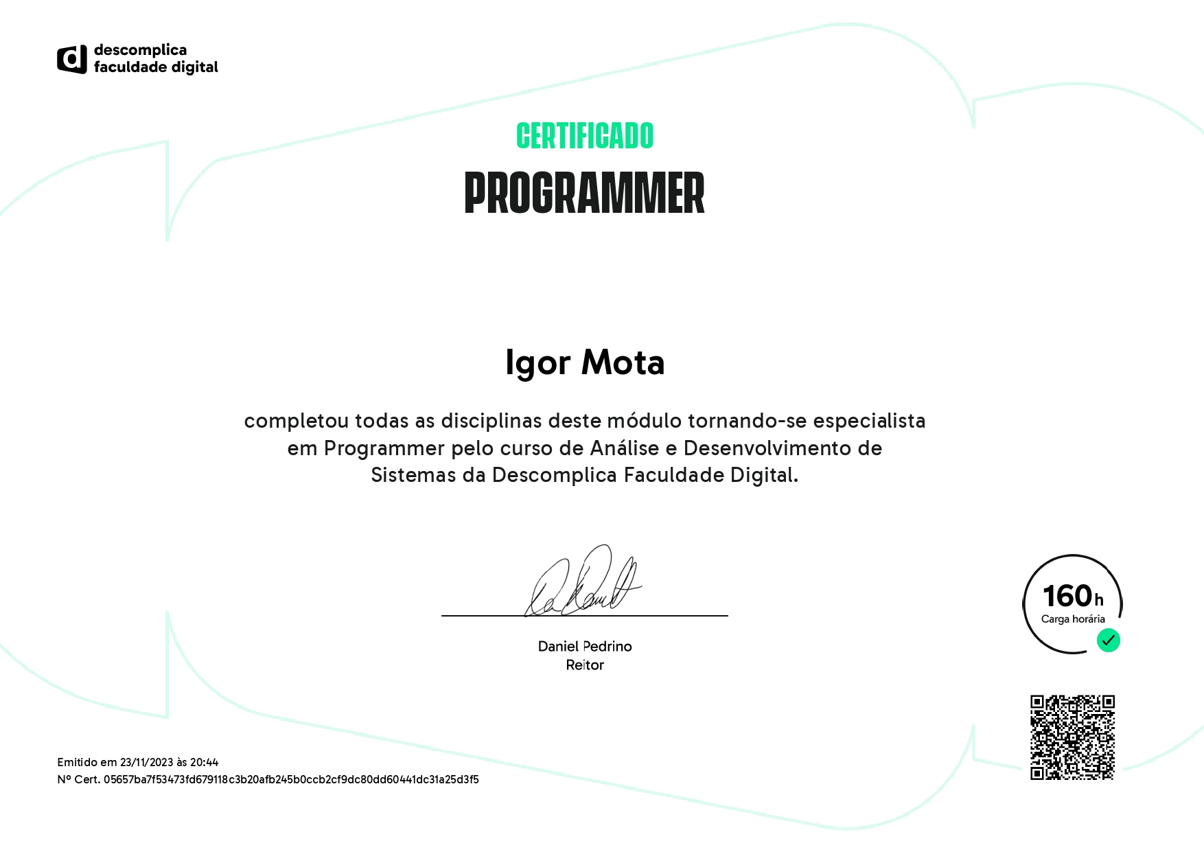 Em julho de 2023, ingressei em uma nova universidade, onde pude consolidar melhor meu aprendizado com vídeos e exercícios práticos.